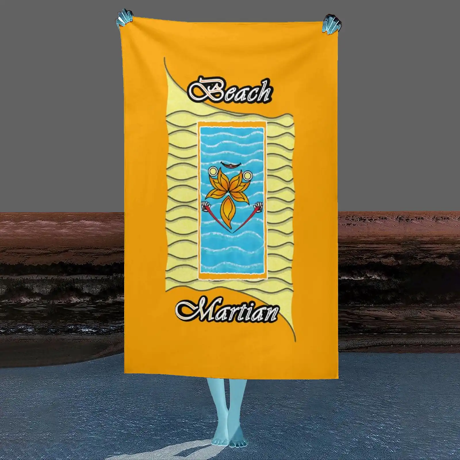 Beach-Towel-130x80cm-orange-255165000-Beach-Martian Available for all countries. Collection “On the Beach again”. Design Beach Martian. Front printing only. Great size, great comfort, great design, great fun. Great, simply.
