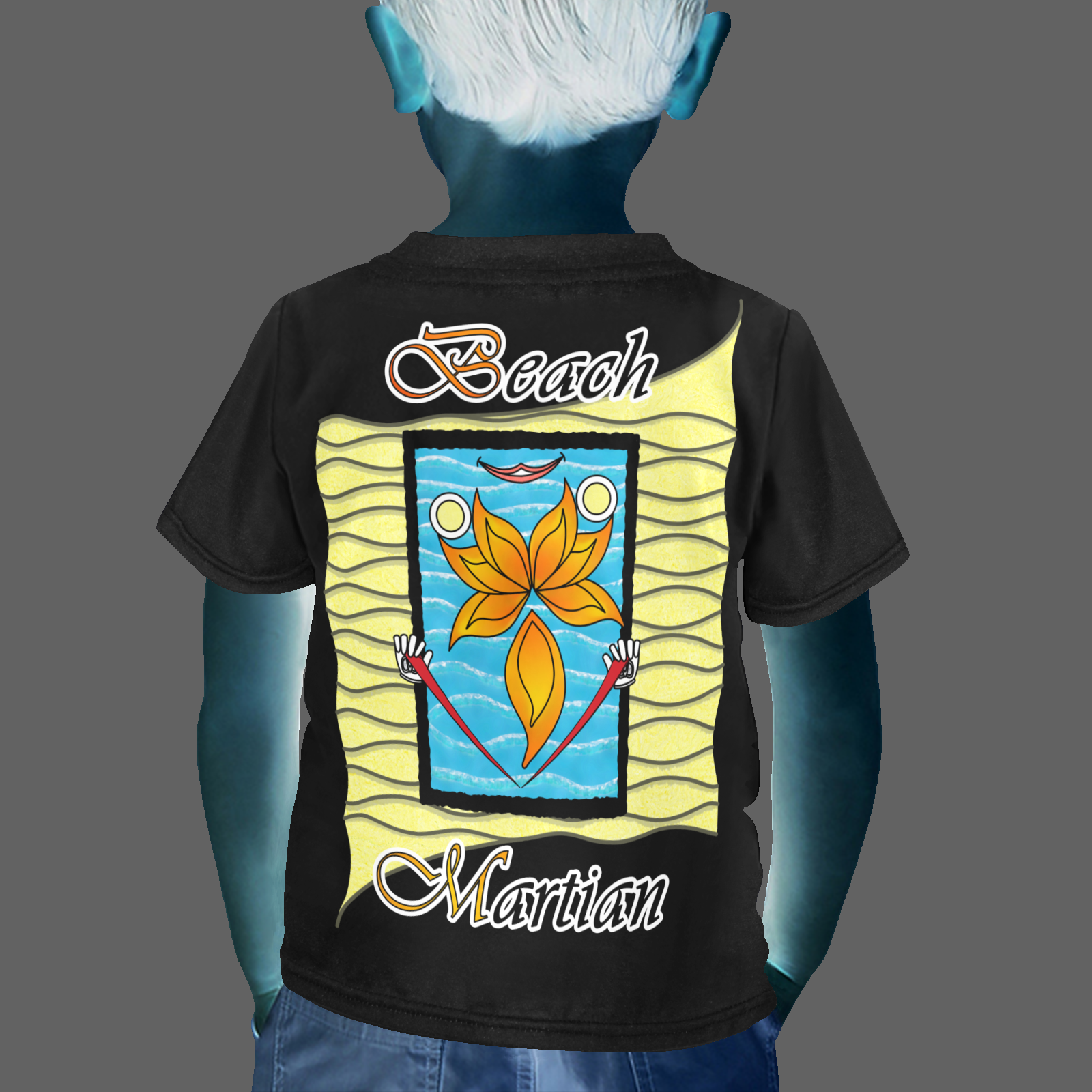 Little-boys-crew-neck-T-shirt-black-000000000-Beach-Martian-USA Sizes: 2-3Y, 4-5Y, 6-7Y. Collection “On the Beach again”. Design Beach Martian. The text is a test to see if you can find the right way in this T-shirt. In the mirror …
