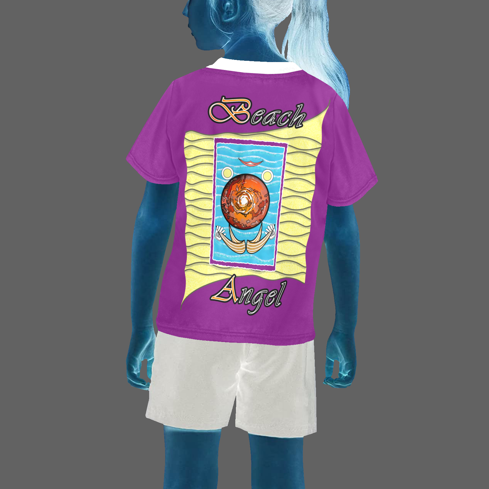 Little-girls-crew-neck-T-shirt-purple-128000128-Beach-Angel-USA Sizes: 2-3Y, 4-5Y, 6-7Y. Collection “On the Beach again”. Design Beach Angel. The text is a test to see if you can find the right way in this T-shirt. In the mirror …