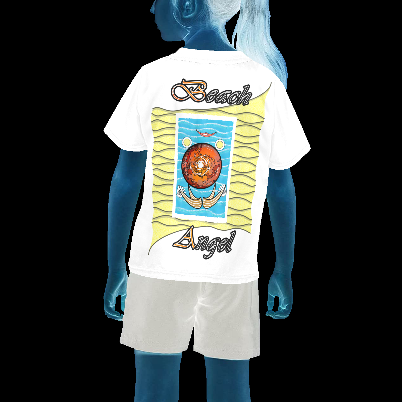 Little girl’s crew neck T-shirt white 255255255 Beach Angel (USA)