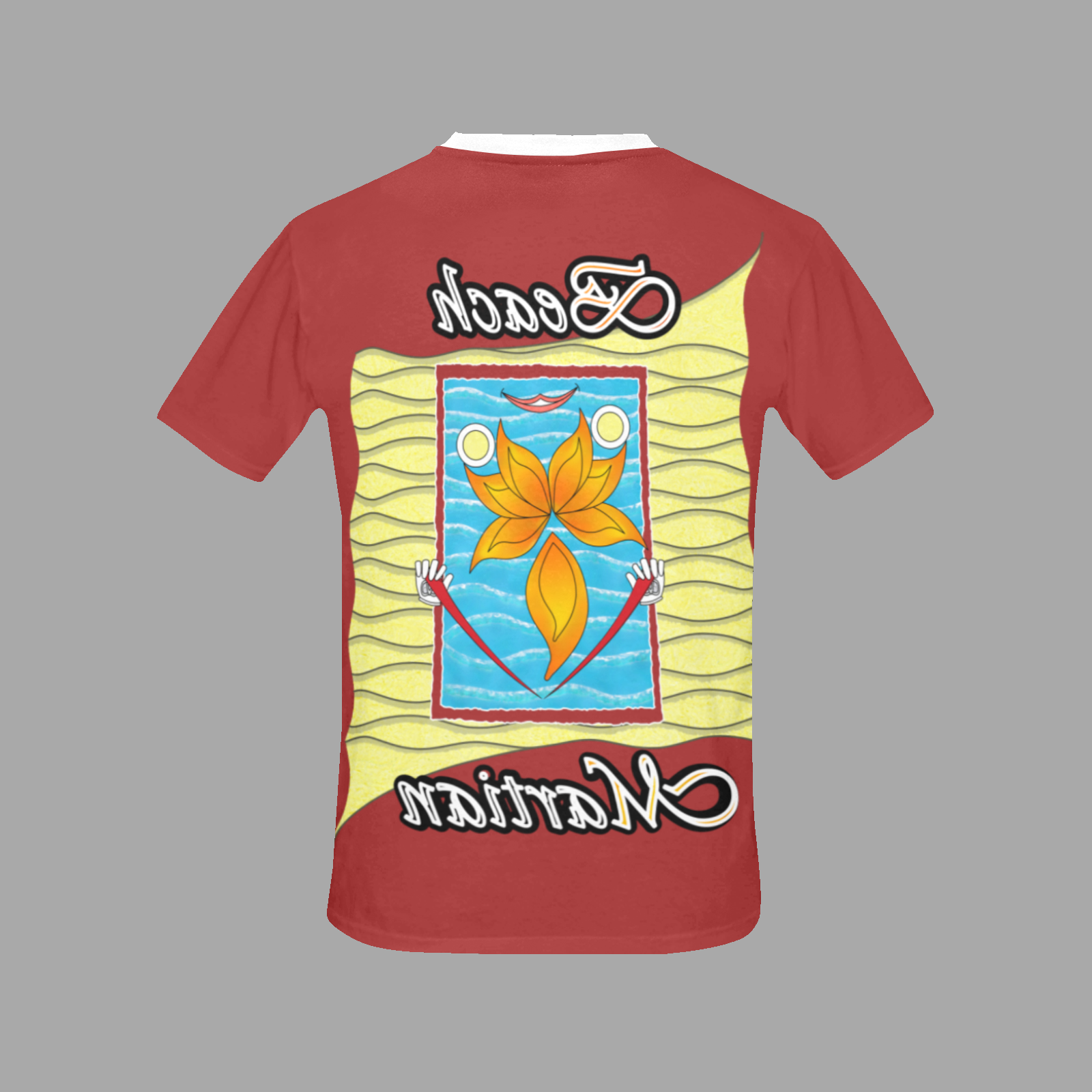8,47 Oz / 237 g. 100% Polyester, for men, All-Over Printing. Custom collar color. Collar increased.