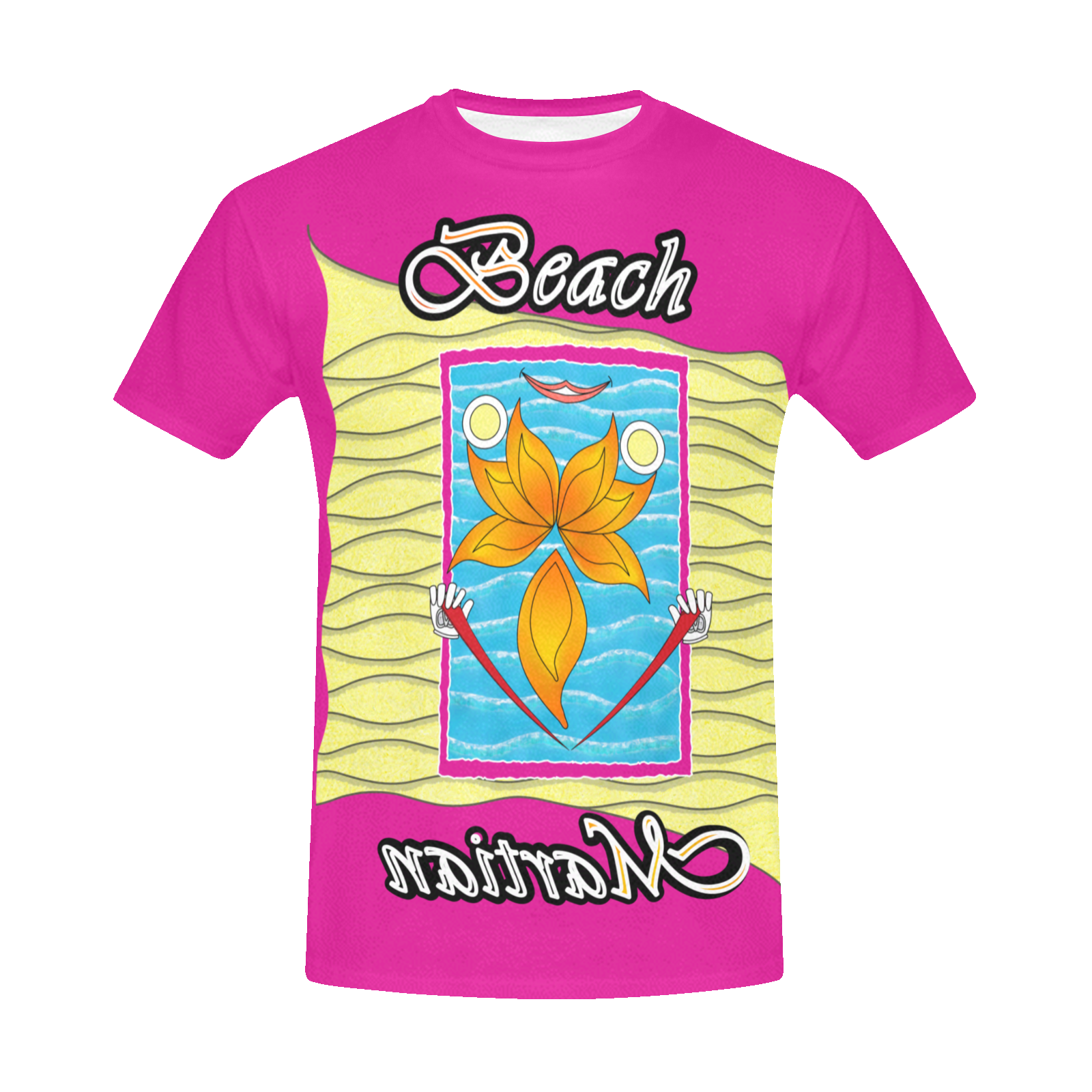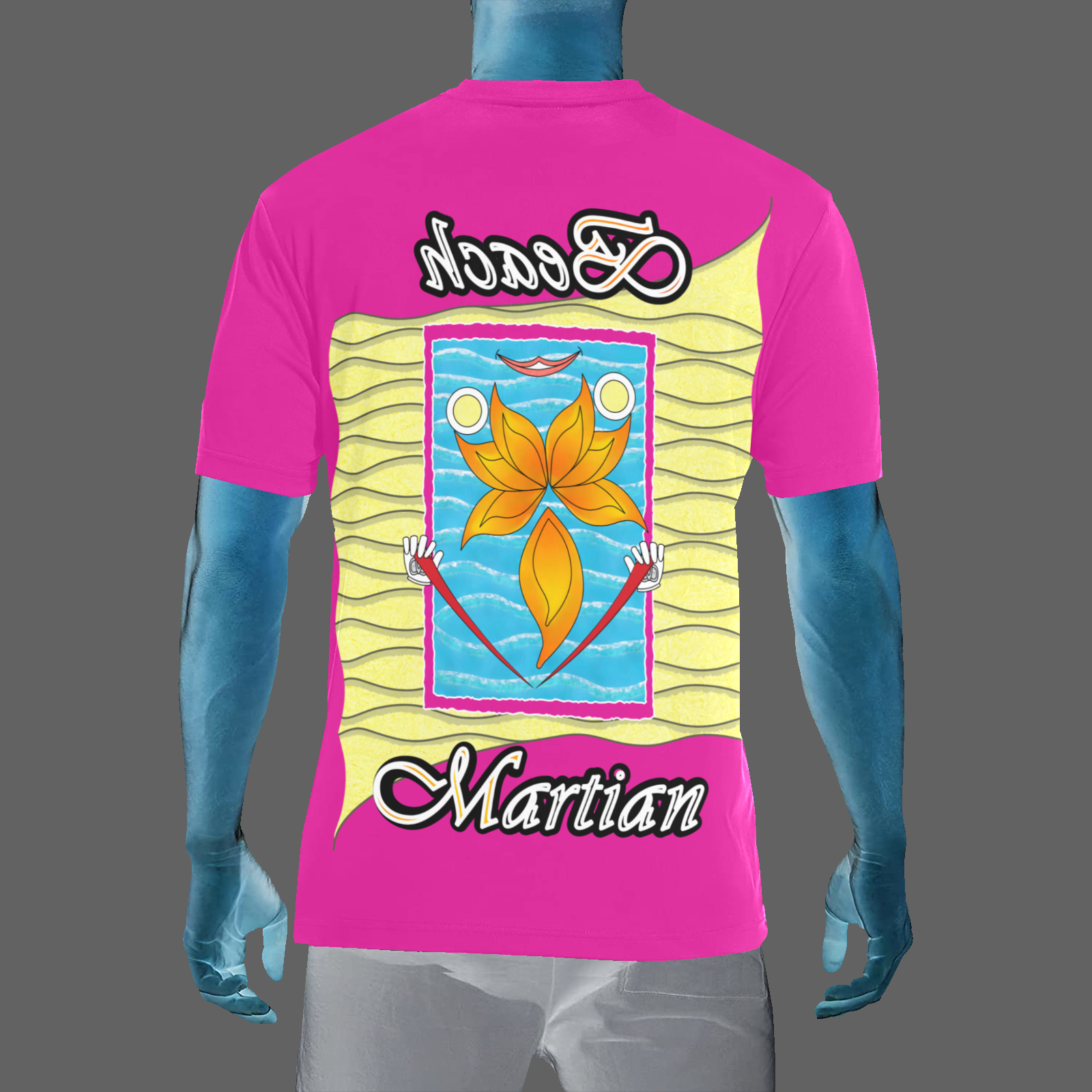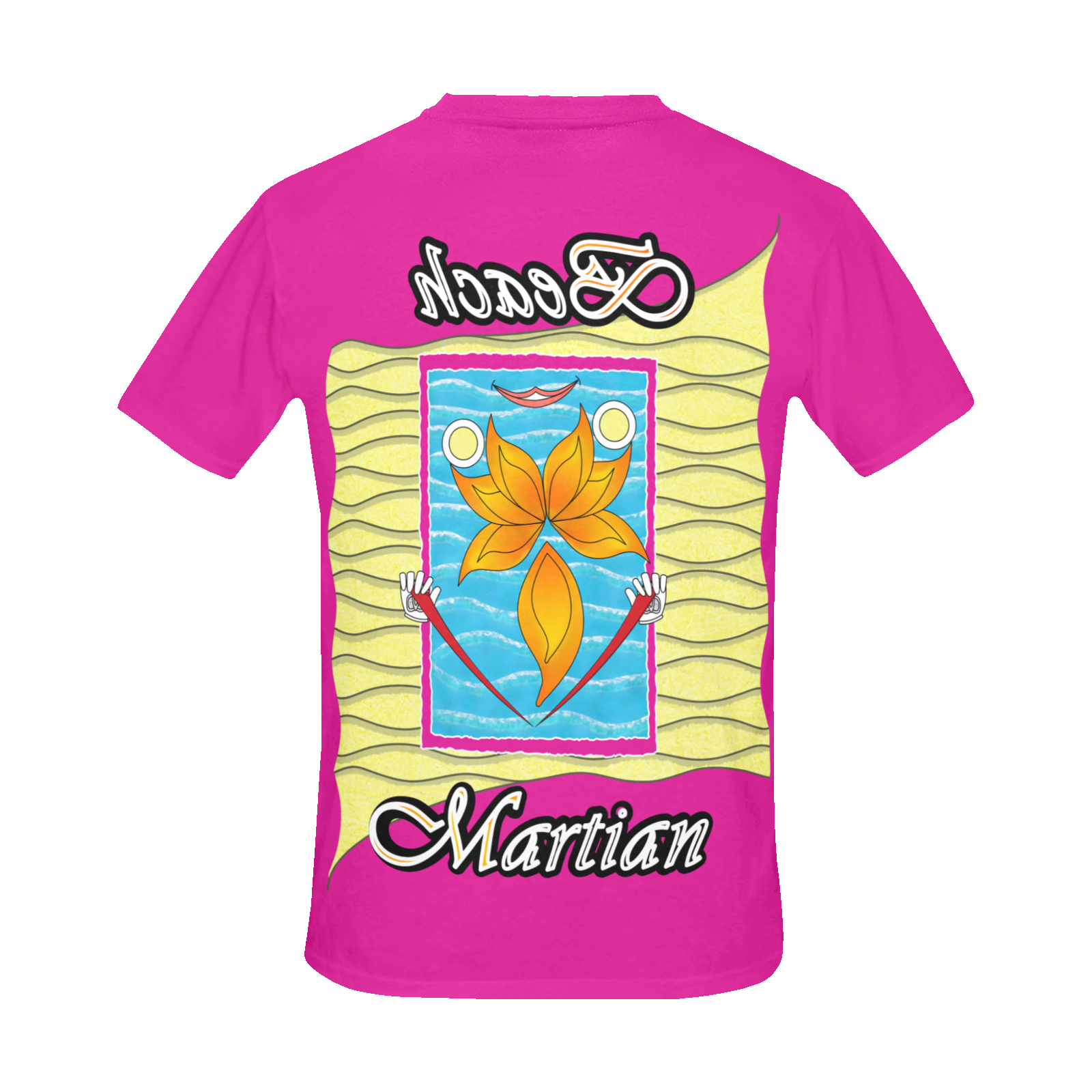 Mens-Crew-Neck-T-Shirt-pink-255020147-Beach-Martian-USA Made and ship out in USA only. Sizes: S, M, L, XL, 2XL, 3XL. Collection “On the Beach again”. Design Beach Martian. Can also be worn in the mountains, in the city, or in the middle of the desert, depending on your sense of humor.