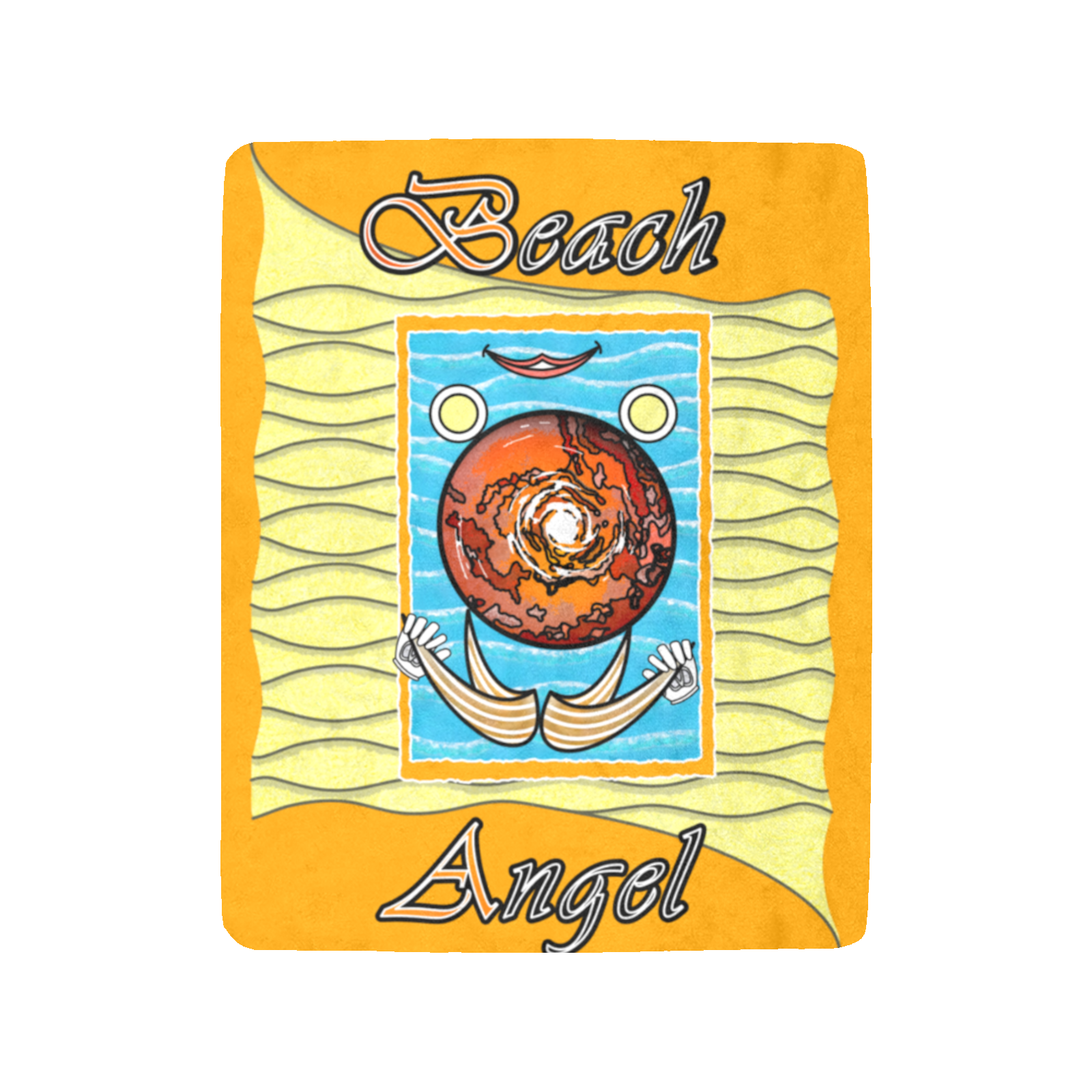 Micro-Fleece-Blanket-50×60-orange-255165000-Beach-Angel-USA Made and ship out in USA only. Collection “On the Beach again”. Design Beach Angel. Front printing only. Can also be used at home, even on Pluto.