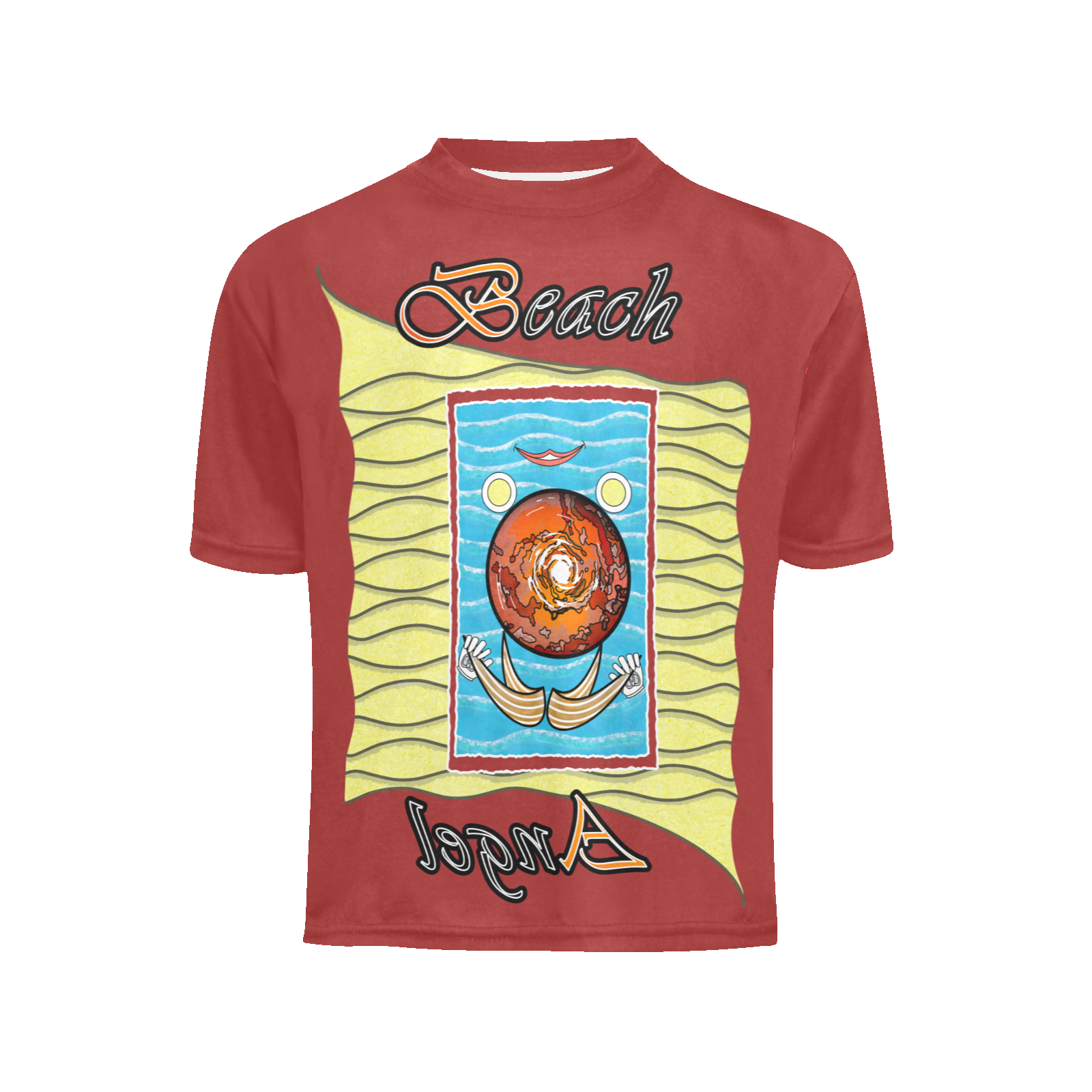 Teens-girls-crew-neck-T-shirt-brown-165042042-Beach-Angel-USA Sizes : 8-9Y, 10-11Y, 12-13Y, 14-15Y. Collection “On the Beach again”. Design Beach Angel. This T-shirt is half inside out on each side! Therefore, the truth is not elsewhere, but inside, it’s a no-brainer!