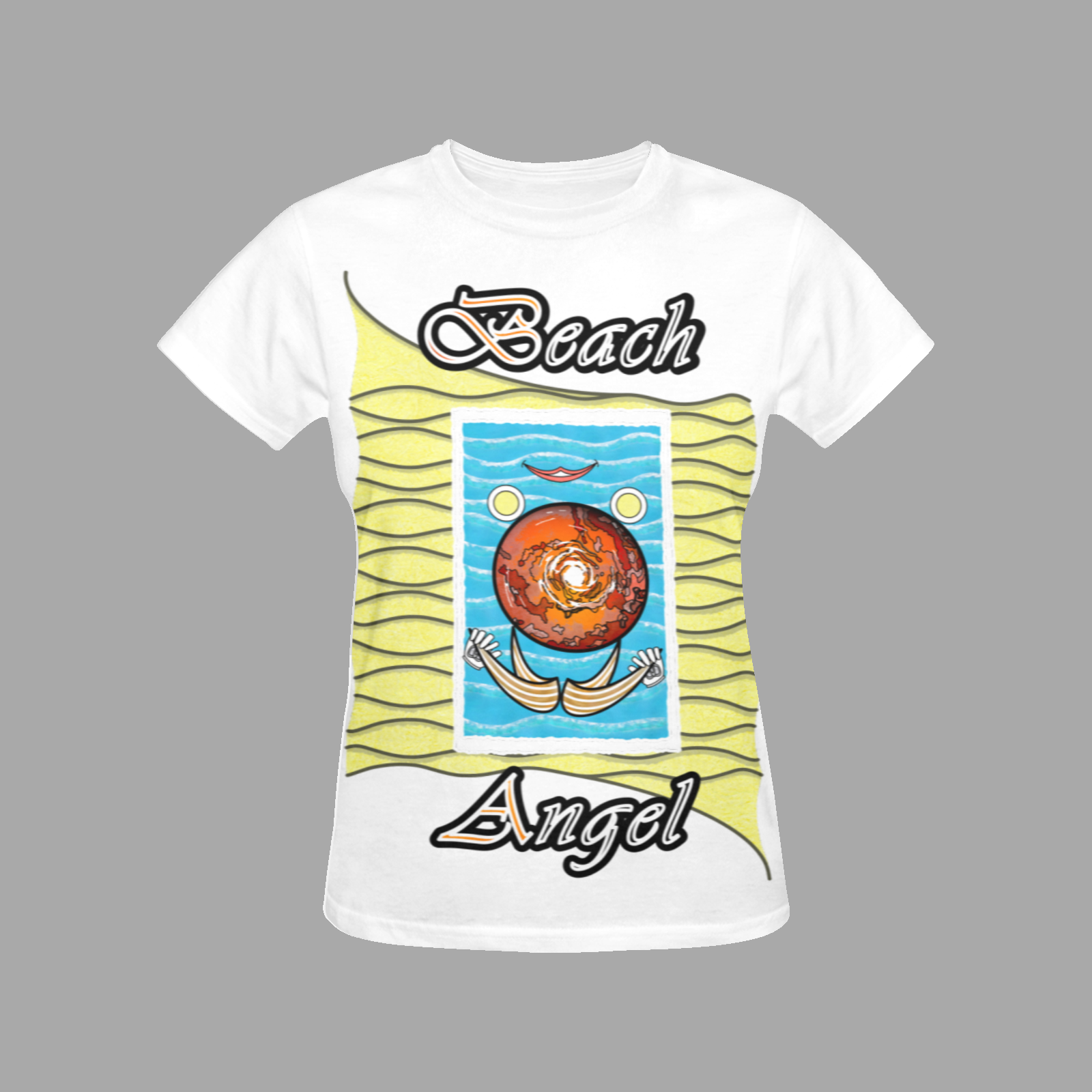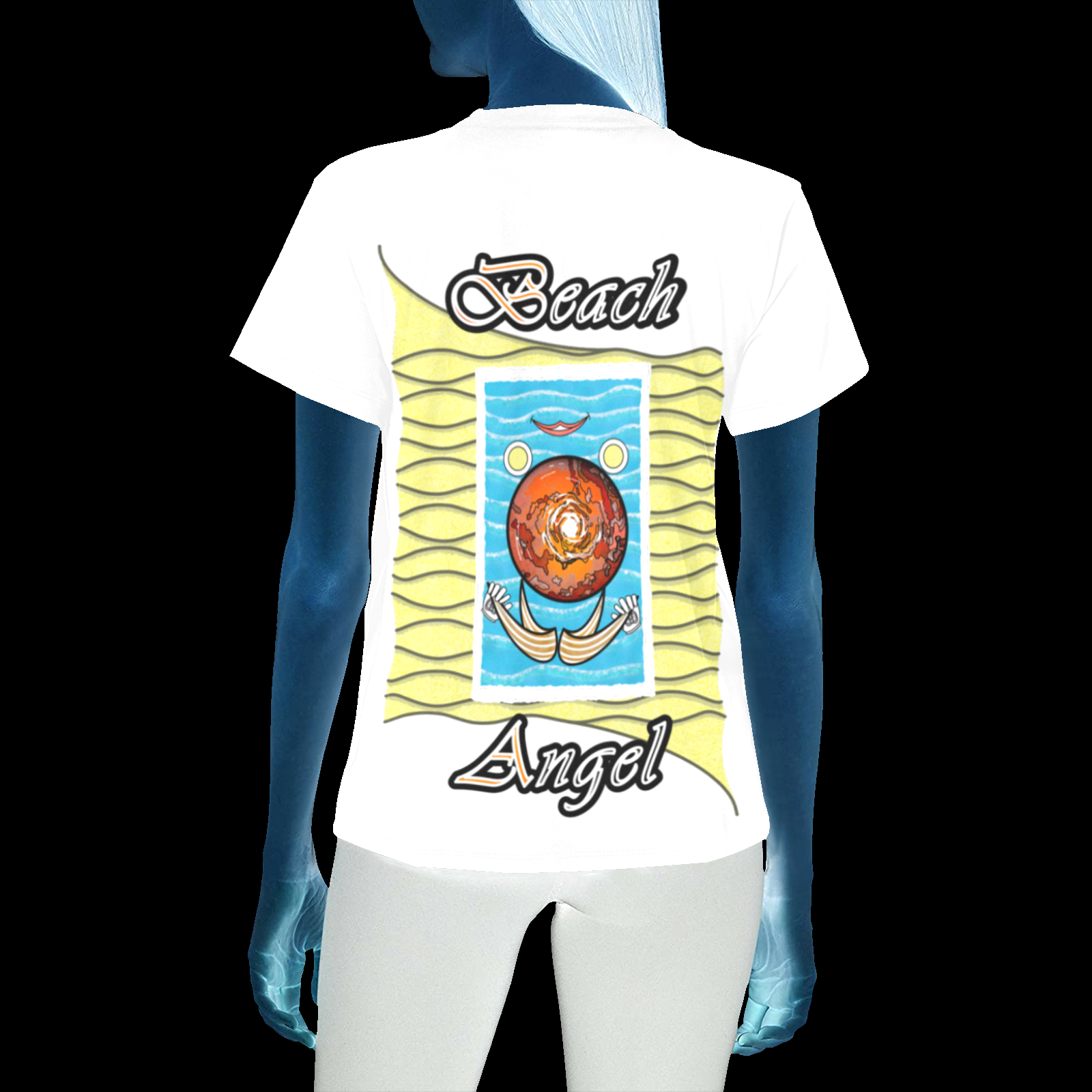 Womens-Crew-Neck-T-Shirt-white-255255255-Beach-Angel Size : XS, S, M, L, XL, 2XL, 3XL, 4XL. Collection “On the Beach again”. Design Beach Angel. Also suitable for inside your home sweet home on Mars!