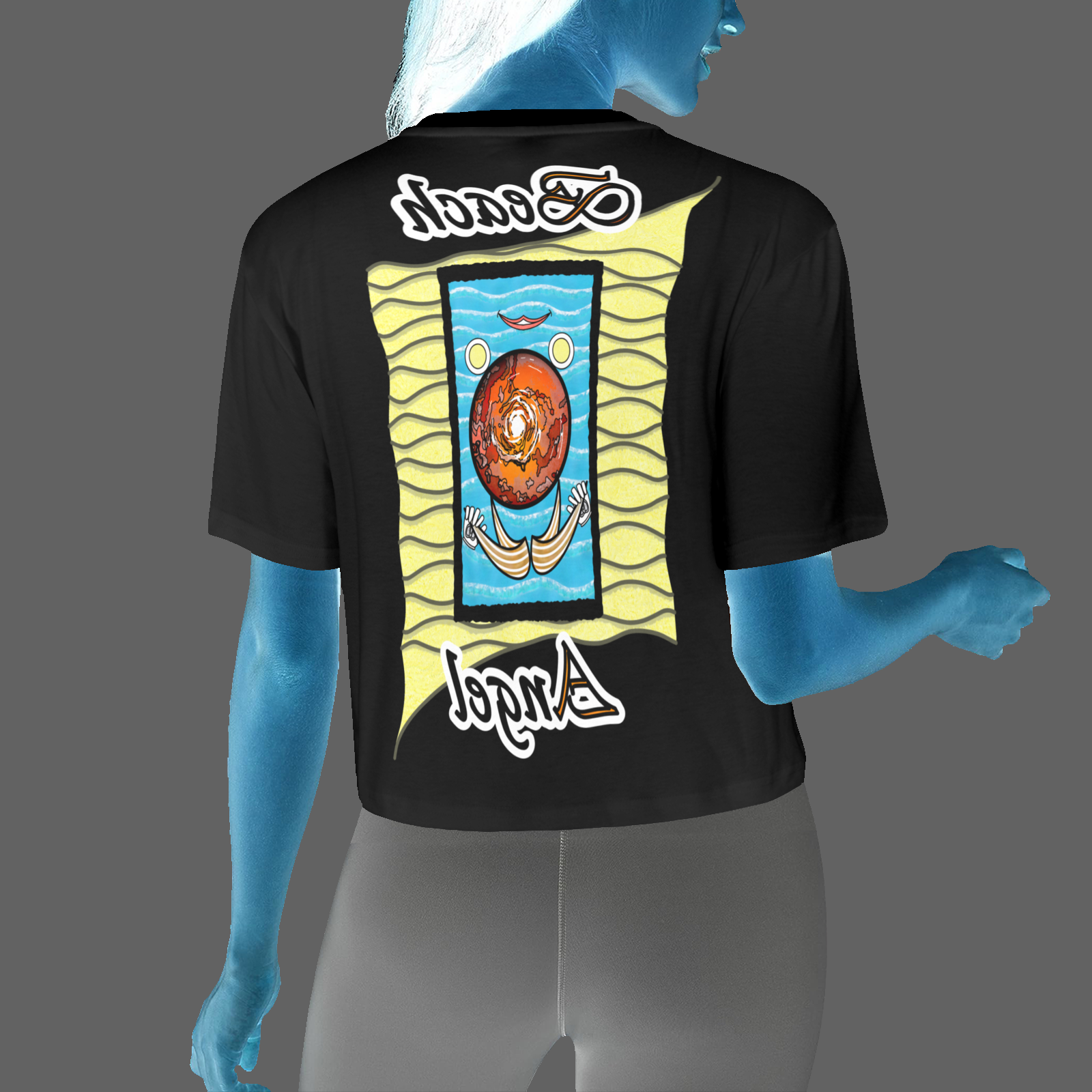 Womens-Cropped-T-shirt-black-000000000-Beach-Angel Size : XS, S, M, L, XL, 2XL Collection “On the Beach again”. Design Beach Angel. Can be worn with socks and class, if needed. Real product: The design in the mirror is perfect. This is a cropped T-shirt, as it falls just above the pants (see Length(A), your favorite tape measure and yourself. At the same time.).